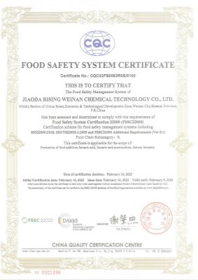 公司通過(guò)了ISO9001:2015、HACCP認(rèn)證和FSSC22000等質(zhì)量安全管理體系認(rèn)證。